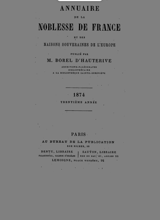 L’Annuaire de la Noblesse de France est , dans ce domaine, la publication française qui eut la plus longue existence.